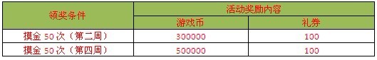 活动时间:开服第二周和第四周(注意:第二周与第四周奖励额度不同)