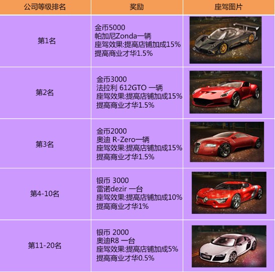 注:活动奖励将在活动结束后3个工作日内发放。公司等级排名以游戏内商业风云排行榜为准,公司等级相同时根据角色昨日收入高低进行排名