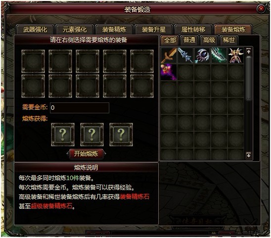 玩家可以在装备锻造面板内找到装备熔炼