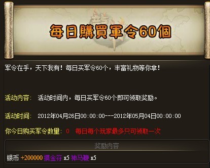 活动时间:2012年4月26日01:00:00 至 4月28日23:59:59