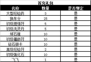 首次充值即得“首充礼包*1”