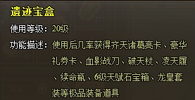 活动内容:活动时间内玩家可以使用金币在活动界面购买珍宝匣,使用珍宝匣以后有几率获得机缘宝盒、金魂、经验卡、珍宝符、银币等!活动时间仅有3天,错过机会不再,赶快行动起来,江山美人尽如怀中!