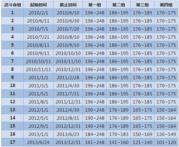 4) 按新积分更新排序列表,重新匹配。总共循环16次,即每个玩家对战16轮后,武斗会结束。