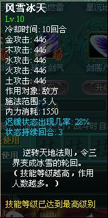 风雪冰天——群体五行攻击,并对目标造成迟缓效果