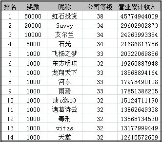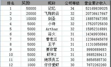区服 名次 昵称 奖励