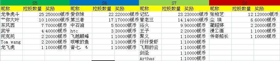 团体奖获得的是S5 具体数值分别为: